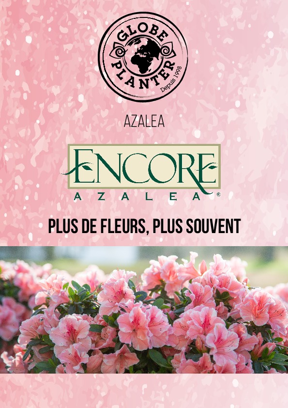 Les azalées ENCORE® fleurissent 2 fois par an. Simples ou doubles, ces variétés aux floraisons successives et spectaculaires supportent le soleil ou la mi-ombre et peuvent être placées sur n'importe quelle scène pour embellir et illuminer le jardin... Si la chaleur et la luminosité sont au rendez-vous, elles peuvent fleurir une troisième fois de juillet à août.