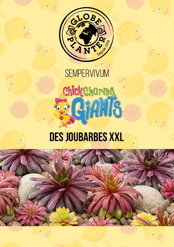 Les Sempervivum CHICK CHARMS® GIANTS sont la version XXL de vos joubarbes préférées ! Ces joubarbes géantes, robustes et quasiment sans entretien, résistent aux conditions climatiques extrêmes et changent de couleur au fil des saisons. Leur grande taille et leurs teintes évolutives subliment les compositions en pot, les bordures ou les rocailles. Avec leur capacité à produire de nombreux rejets, elles créent des corolles spectaculaires et décoratives. Parfaites pour les amateurs de plantes originales et résistantes, elles feront sensation partout !
