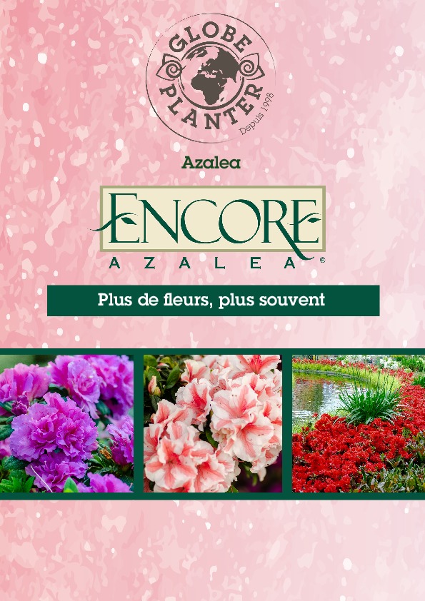 Les azalées ENCORE® fleurissent 2 fois par an. Simples ou doubles, ces variétés aux floraisons successives et spectaculaires supportent le soleil ou la mi-ombre et peuvent être placées sur n'importe quelle scène pour embellir et illuminer le jardin... Si la chaleur et la luminosité sont au rendez-vous, elles peuvent fleurir une troisième fois de juillet à août.