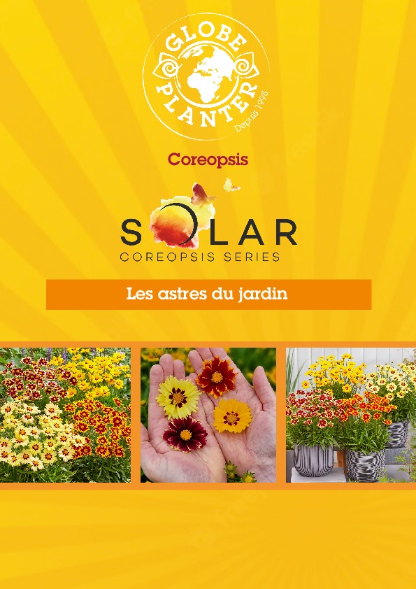 La série des coréopsis SOLAR® est une célébration du soleil au jardin. Ces vivaces remarquables arborent de grandes fleurs aux tons chauds, allant du jaune lumineux au rouge cramoisi, offrant une floraison remontante du début de l'été aux premières gelées. Leur résistance au mildiou et leur robustesse jusqu'à -20 °C font d'elles des compagnes durables. De plus, ces variétés mellifères invitent les pollinisateurs dans votre espace extérieur. Avec les coréopsis SOLAR®, profitez d'un soleil éternel au jardin !
