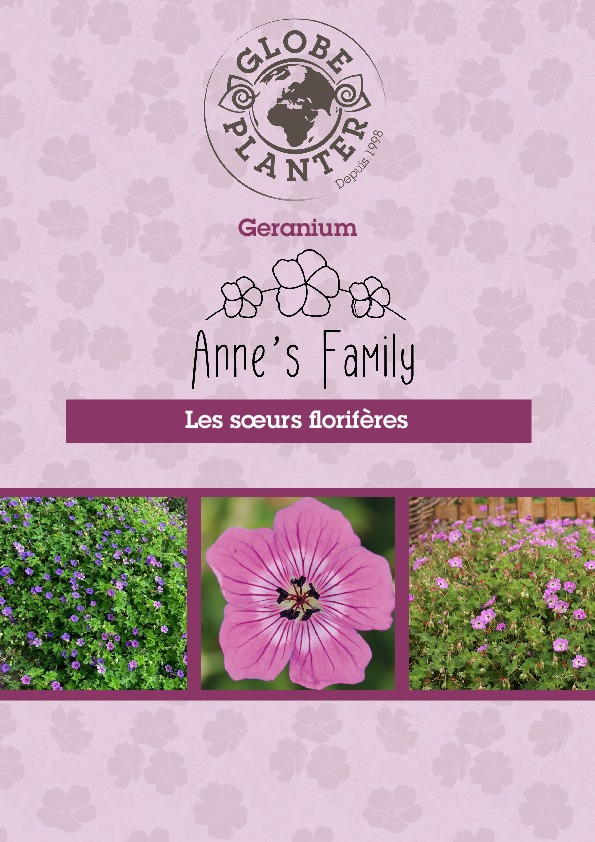 Dotés d’une floraison longue et généreuse s’étendant de la fin du printemps aux premières gelées, les Geranium de la série ANNE'S FAMILY® portent de grandes fleurs mellifères dans les tons roses violacés. Ils sont de parfaits couvre-sols et se comportent aussi très bien en pot.