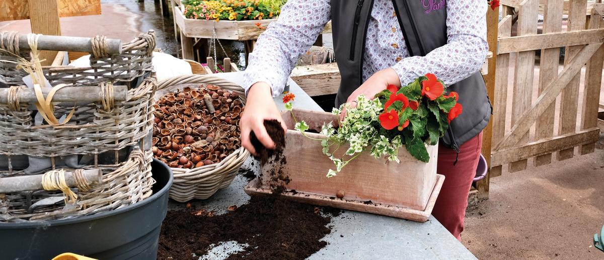Écorces, cordages, tissus, paillage... Ajoutez des éléments décoratifs à votre composition pour un enchantement constant.