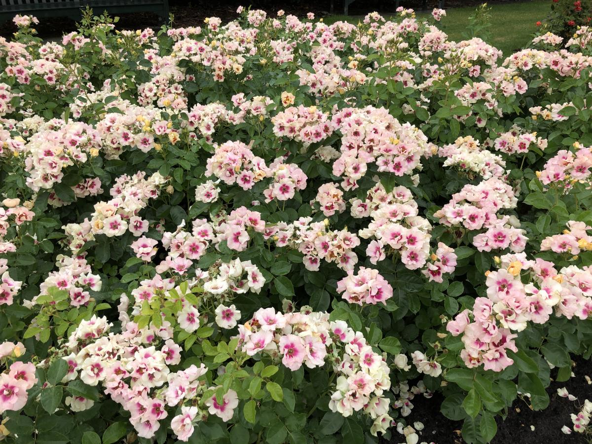 Des fleurs blanches au cœur violet à foison sur ce rosier solide et facile !