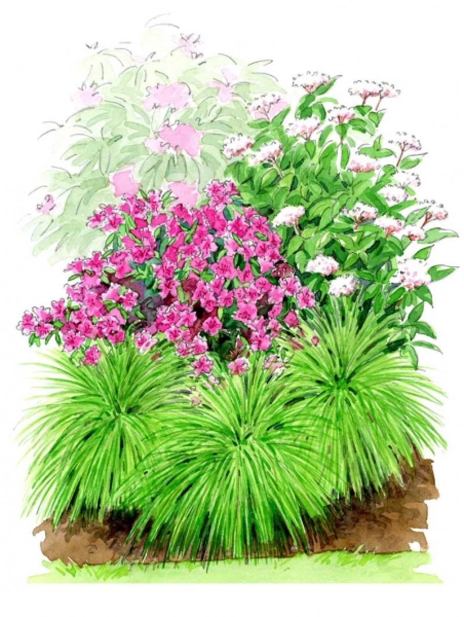 Mettez en valeur un massif de grands arbustes avec ce choix assurant volumes, couleurs et floraisons étalées.