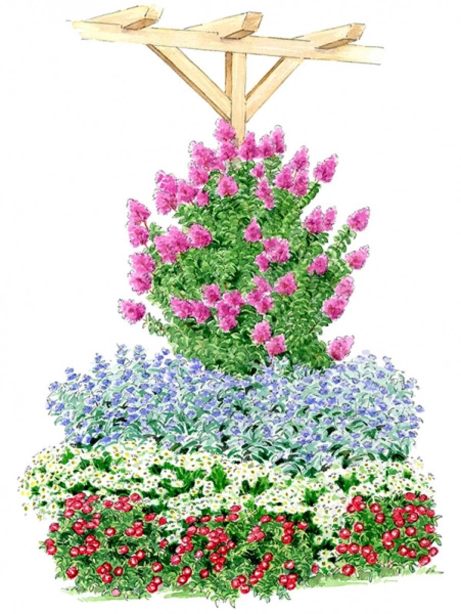 Quantité : 1 Lagerstroemia WITH LOVE ® 'Girl', 3 Aster 'Starshine', 3 Rosiers LILLIPUTS® ‘Schöne Koblenzerin®’, 3 Caryopteris 'Sterling Silver'.